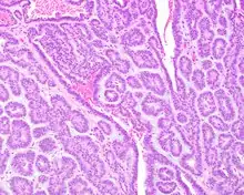 Tumors are usually small because they come to clinical attention early on in development, with an average size of about 1.6 cm.[1] There is a very characteristic appearance to the tumor when reviewed histologically.