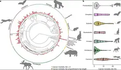 - Vincze, Orsolya; Colchero, Fernando; Lemaître, Jean-Francois; Conde, Dalia A.; Pavard, Samuel; Bieuville, Margaux; Urrutia, Araxi O.; Ujvari, Beata; Boddy, Amy M.; Maley, Carlo C.; Thomas, Frédéric; Giraudeau, Mathieu (13 January 2022). "Cancer risk across mammals". Nature. 601 (7892): 263–267. Bibcode:2022Natur.601..263V. doi:10.1038/s41586-021-04224-5. PMC 8755536. PMID 34937938. S2CID 245425871.