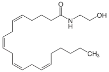 Two analogs of anandamide, 7,10,13,16-docosatetraenoylethanolamide and homo-γ-linolenoylethanolamine, have similar pharmacology. All of these compounds are members of a family of signalling lipids called N-acylethanolamines, which also includes the noncannabimimetic palmitoylethanolamide and oleoylethanolamide, which possess anti-inflammatory and anorexigenic effects, respectively. Many N-acylethanolamines have also been identified in plant seeds[77] and in molluscs.[78]