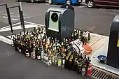 Canners, or those who collect and redeem deposit-marked beverage containers, are a familiar sight in many cities, whether combing areas following major events, searching through trash containers, or transporting their collected bottles and cans to redemption sites.[6]
