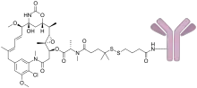 Cantuzumab ravtansine (huC242-SPDB-DM4) is an antibody-drug conjugate designed for the treatment of cancers. The humanized monoclonal antibody cantuzumab (huC242) is linked to a cytotoxic agent, ravtansine (DM4).[1] It uses a more hindered disulfide linkage than cantuzumab mertansine.[2]