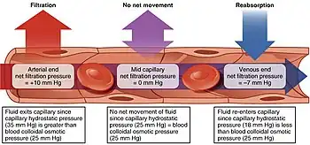 The transport mechanisms can be further quantified by the Starling equation.[20] The Starling equation defines the forces across a semipermeable membrane and allows calculation of the net flux: