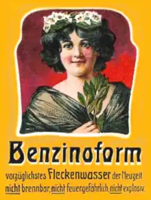 German advertisement stamp for Benzinoform (carbon tetrachloride) stain remover, 1912