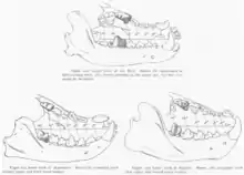 Though not superficially similar, the triconodont teeth of some early mammals such as eutriconodonts are thought to have had a function similar to those of carnassials, sharing a similar shearing function. Eutriconodonts possess several speciations towards animalivory, and the larger forms such as Repenomamus, Gobiconodon and Jugulator probably fed on vertebrate prey.[14] Similarly the "tooth lips" of clevosaurid sphenodontians such as Clevosaurus are described as "carnassial-like".[15] A lineage of pycnodont fish also developed carnassials eerily convergent with those of modern carnivorans.[16]