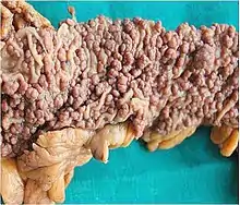 Many of the cancer syndrome cases are caused by mutations in tumor suppressor genes that regulate cell growth. Other common mutations alter the function of DNA repair genes, oncogenes and genes involved in the production of blood vessels.[12] Certain inherited mutations in the genes BRCA1 and BRCA2 with a more than 75% risk of breast cancer and ovarian cancer.[3] Some of the inherited genetic disorders that can cause colorectal cancer include familial adenomatous polyposis and hereditary non-polyposis colon cancer; however, these represent less than 5% of colon cancer cases.[13] In many cases, genetic testing can be used to identify mutated genes or chromosomes that are passed through generations.