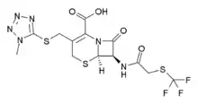 - DeMarinis RM, Boehm JC, Dunn GL, Hoover JR, Uri JV, Guarini JR, et al. (January 1977). "Semisynthetic cephalosporins. Synthesis and structure-activity relationships of analogues with 7-acyl groups derived from 2-(cyanomethylthio)acetic acid or 2-[(2,2,2-trifluoroethyl)thio]acetic acid and their sulfoxides and sulfones". Journal of Medicinal Chemistry. 20 (1): 30–5. doi:10.1021/jm00211a006. PMID 319233.