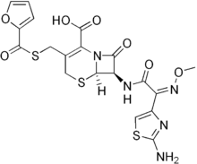 Ceftiofur is an antibiotic of the cephalosporin type (third generation), licensed for use in veterinary medicine. It was first described in 1987.[1] It is marketed by pharmaceutical company Zoetis as Excenel,[2] Naxcel, and Excede and is also the active ingredient in that company's Spectramast LC (lactating cow formulation) and Spectramast DC (dry cow formulation) product.