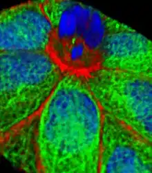 - Rosenblatt J, Raff MC, Cramer LP (November 2001). "An epithelial cell destined for apoptosis signals its neighbors to extrude it by an actin- and myosin-dependent mechanism". Current Biology. 11 (23): 1847–1857. doi:10.1016/s0960-9822(01)00587-5. PMID 11728307. S2CID 5858676.