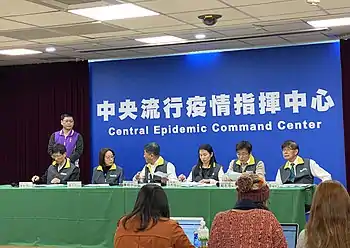 The Central Epidemic Command Center (CECC; Chinese: 國家衛生指揮中心中央流行疫情指揮中心) is an agency of the National Health Command Center (NHCC). It has been activated by the government of Taiwan for several disease outbreaks, such as the 2009 swine flu pandemic and the COVID-19 pandemic. The head of the agency is Chen Shih-chung, the minister of health and welfare.[1] The CECC is associated with the Taiwan Centers for Disease Control (Taiwan CDC).