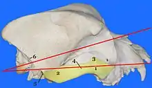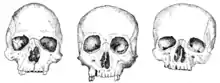 The vertical cephalic index, also known as the length-height index, was a less-commonly measured head ratio.[8][9] In the vertical cephalic index model, humans beings were characterized by having either a chamaecranic (low-skulled), orthocranic (medium high-skulled), or hypsicranic (high-skulled) cephalic index or cranial index.