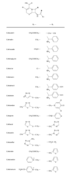 The cephalosporins (sg. /ˌsɛfələˈspɔːrɪn, ˌkɛ-, -l-/[1][2]) are a class of β-lactam antibiotics originally derived from the fungus Acremonium, which was previously known as Cephalosporium.[3]