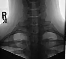 A cervical rib in humans is an extra rib which arises from the seventh cervical vertebra. Their presence is a congenital abnormality located above the normal first rib. A cervical rib is estimated to occur in 0.2%[2] to 0.5%[3] (1 in 200 to 500) of the population.[4] People may have a cervical rib on the right, left or both sides.[5][6]