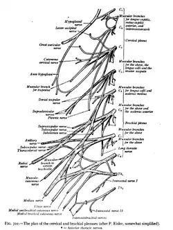 ![]() The plan of the cervical and brachial plexuses. | |