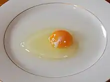 In the eggs of most birds (not of the reptiles[1]), the chalazae are two spiral bands of tissue that suspend the yolk in the center of the white (the albumen). The function of the chalazae is to hold the yolk in place. In baking, the chalazae are sometimes removed in order to ensure a uniform texture.
