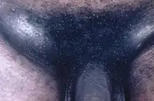 | Giant chancroid | Large granulomatous ulcer at the site of a ruptured inguinal bubo, extending beyond its margins. |
