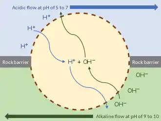 Deep-sea hydrothermal vents, emitting hot acidic or alklaine water, would have created external proton gradients. These provided energy that primordial organisms could have exploited. To keep the flows separate, such an organism could have wedged itself in the rock of the hydrothermal vent, exposed to the hydrothermal flow on one side and the more alkaline water on the other. As long as the organism's membrane (or passive ion channels within it) is permeable to protons, the mechanism can function without ion pumps. Such a proto-organism could then have evolved further mechanisms such as ion pumps and ATP synthase.[10]