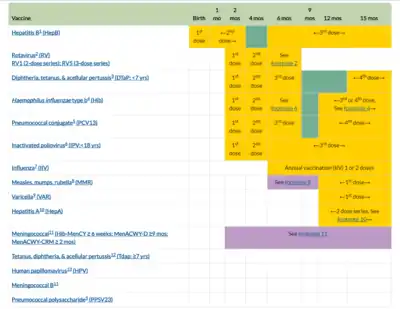 - "Immunization Schedules". CDC. Retrieved 16 September 2014.