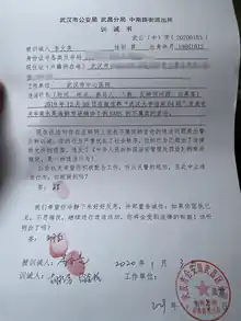 A group of eight medical personnel, including Li Wenliang, an ophthalmologist from Wuhan Central Hospital who in late December posted warnings on a new coronavirus strain akin to SARS, were taken into custody by Wuhan police and threatened with prosecution for "spreading rumours" for likening it to SARS.[37][38] Li Wenliang later died of the disease on 7 February, and was widely hailed as a whistleblower in China, but some of the trending hashtags on Weibo such as "Wuhan government owes Dr Li Wenliang an apology" and "We want freedom of speech" were blocked.[39][40][41] His death widespread public anger in the aftermath, in what has been described as "one of the biggest outpourings of online criticism of the government in years," was not a topic that was permitted for coverage.[42]