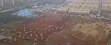 On 23 January 2020, the Chinese government banned travel to and from Wuhan, enforced strict quarantines in affected regions and initiated a national response.[11] The epidemic in Hubei province peaked on 4 February 2020.[11] Large temporary hospitals were built in Wuhan to isolate patients with mild-to-moderate symptoms, with the first opening on 5 February 2020.[3] The epidemic was heavily concentrated within Hubei province and Wuhan. Through 22 March 2020, over 80% of the recorded cases in China were in Hubei province, with over 60% of cases nationwide occurring in Wuhan alone.[14]