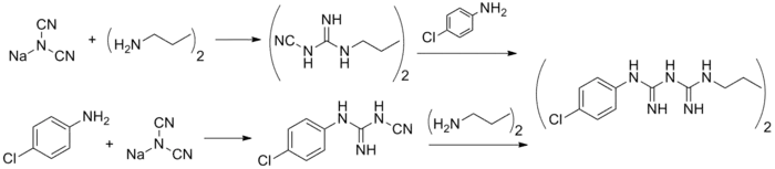 The structure is based on two molecules of proguanil, linked with a hexamethylenediamine spacer.