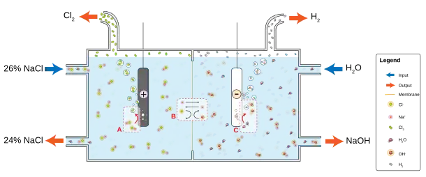 - "The membrane cell process". Euro Chlor. Archived from the original on 2011-11-11. Retrieved 2007-08-15.