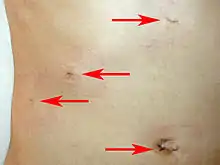 Natural orifice transluminal endoscopic surgery (NOTES) is an experimental technique where the laparoscope is inserted through natural orifices and internal incisions, rather than skin incisions, to access to the abdominal cavity.[44] This offers the potential to eliminate visible scars.[45] Since 2007, cholecystectomy by NOTES has been performed anecdotally via transgastric and transvaginal routes.[44] As of 2009 the risk of gastrointestinal leak, difficulty visualizing the abdominal cavity and other technical limitations limited further adoption of NOTES for cholecystectomy.[45]