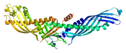 The crystal structure of CETP is that of dimer of two TUbular LIPid (TULIP) binding domains.[3][4] Each domain consists of a core of 6 elements: 4 beta-sheets forming an extended superhelix; 2 flanking elements that tend to include some alpha helix. The sheets wrap around the helices to produce a cylinder 6 x 2.5 x 2.5 nm. CETP contains two of these domains that interact head-to-head via an interface made of 6 beta-sheets, 3 from each protomer. The same fold is shared by Bacterial Permeability Inducing proteins (examples: BPIFP1 BPIFP2 BPIFA3 and BPIFB4), phospholipid transfer protein (PLTP), and long-Palate Lung, and Nasal Epithelium protein (L-PLUNC). The fold is similar to intracellular SMP domains,[5] and originated in bacteria.[6][7][8] The crystal structure of CETP has been obtained with bound CETP inhibitors.[9] However, this has not resolved the doubt over whether CETP function as a lipid tube or shuttle.[10]
