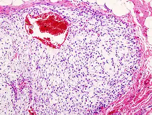 | Histopathologic image of chondrosarcoma of the chest wall. Surgical resection of recurrent mass. H & E stain. | |