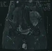 Imaging studies – including radiographs ("x-rays"), computerized tomography (CT), and magnetic resonance imaging (MRI) – are often used to make a presumptive diagnosis of chondrosarcoma.[9] However, a definitive diagnosis depends on the identification of malignant cancer cells producing cartilage in a biopsy specimen that has been examined by a pathologist. In a few cases, usually of highly anaplastic tumors, immunohistochemistry (IHC) is required.