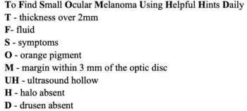 - A tumor thickness greater than 2mm[18] or a tumor two times or more larger than the optic nerve head.[9]