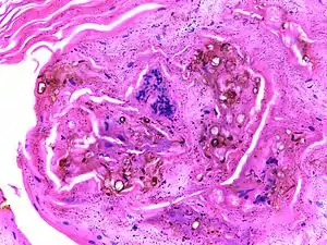 | Micrograph of chromoblastomycosis showing sclerotic bodies | |