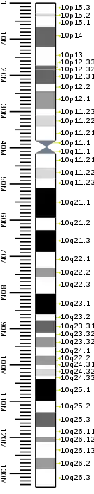 - "Search results - 10[CHR] AND "Homo sapiens"[Organism] AND ("genetype protein coding"[Properties] AND alive[prop]) - Gene". NCBI. 2017-05-19. Retrieved 2017-05-20.
