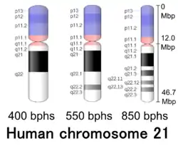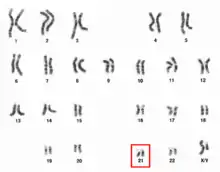 ![]() Chromosome 21 pair in human male karyogram. | |