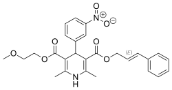 Cilnidipine is a calcium channel blocker. Cilnidipine is approved for use in Japan, China, India, Nepal, and Korea for hypertension.