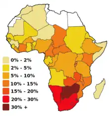 The prevalence of circumcision varies across Africa.[26][27] Studies were conducted to assess the acceptability of promoting circumcision; in 2007, country consultations and planning to scale up male circumcision programmes took place in Botswana, Eswatini, Kenya, Lesotho, Malawi, Mozambique, Namibia, Rwanda, South Africa, Uganda, Tanzania, Zambia and Zimbabwe.[28]
