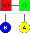 When testing paternity or maternity by ABO blood group alone, it is possible to have a paradoxical result in the rare instance that a cis-AB genotype is involved. For example, (scenario 1.1 above) a child of a cis AB individual (who will test as a regular AB phenotype) and an O individual will be either AB or O instead of the usual A or B (see diagram above).