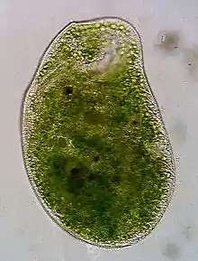 When Climacostomum virens is grown in the dark, the algal endosymbionts normally found in it are reduced in number and the cytoplasm appears colorless.[11] Peck et al. report that these are not contained within a membrane, but are in direct contact with the host's cytoplasm; however, other observers have noted the presence of perialgal vacuoles around the algae.[1][12]