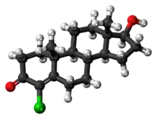 Clostebol is a weak AAS with potential use as a performance enhancing drug. It is currently banned by the World Anti-Doping Agency.[2] Chlorodehydromethyltestosterone (Oral Turinabol), combining the chemical structures of clostebol and metandienone, was widely used in the East German state-sponsored doping program.[3]