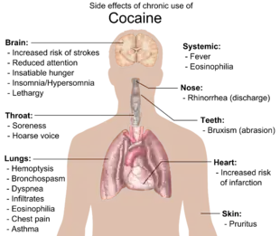 Cocaine use leads to an increased risk of hemorrhagic and ischemic strokes.[44] Cocaine use also increases the risk of having a heart attack.[84]