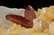 - cinnabar, realgar, arsenolite, laminar malachite, and magnetite[31]