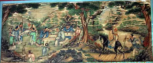 Many other famous literati, such as the Seven Sages of the Bamboo Grove, especially the musician Ruan Ji (210–263), the alchemist Ji Kang (223–262), and the calligrapher Wang Xizhi (c. 303–361), reportedly were enthusiastic users of the drug. "Like an indulgent lifestyle of alcoholic excesses, the use of this drug became the hallmark of the free thinkers of the age".[25] Livia Kohn describes Ruan Ji's artistic expression,