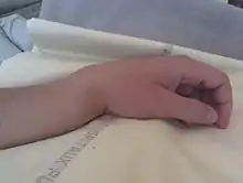 A Colles' fracture is a type of fracture of the distal forearm in which the broken end of the radius is bent backwards.[2] Symptoms may include pain, swelling, deformity, and bruising.[2] Complications may include damage to the median nerve.[1]