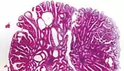 • Mucin-rich type: Serrated ("saw tooth") appearance, containing glands with star-shaped lumina.[11] Crypts that are elongated but straight, narrow and hyperchromatic at the base. All crypts reach to the muscularis mucosae.[11]