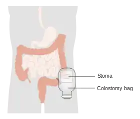 - A part of the colon has been removed, e.g. due to colon cancer requiring a total mesorectal excision, diverticulitis, injury, etc., so that it is no longer possible for feces to exit via the anus.