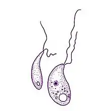 These are small (< 20 μm in diameter) flagellated protists. The life cycle of consists of two main stages: flagellated trophozoites and cysts, which are the reproductive stage in the life cycle.