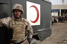 The modern-day interpretation of the U.S. Army doctrine requires medics to carry one primary weapon and, if possible, a secondary weapon.[15] It is also common to find American combat medics who are no longer wearing the red or white cross because it is considered unethical to do so when the combat medic is carrying a weapon and could engage in actual combat.[16]