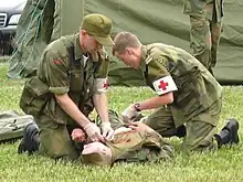 All Regular Force Medical Technicians begin training with the Canadian Forces Leadership and Recruit School in Saint-Jean-sur-Richelieu, Quebec.[1] Then they begin Occupational training at The Canadian Forces Health Services Training Center in Borden, Ontario, where they are taught how to maintain medical supplies and equipment, screen patients, implement patient care plans, treat medical conditions, administer diagnostic procedures, medications, and continuous infusions. They also learn how to manage airways and assist with minor surgical procedures setting up deployed medical facilities and treating casualties in an operational and CBRNE environment over the course of 47-48 weeks. They also earn the Primary Care Paramedic Level 1 certification. Advanced training can include, Preventive Medicine, Biomedical electronics, and Aviation Physiology, among others.