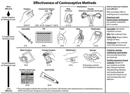 {{cite web}}: CS1 maint: archived copy as title (link) - Trussell J (2011). "Contraceptive Efficacy." (PDF). In Hatcher RA, Trussell J, Nelson AL, Cates W, Kowal D, Policar M (eds.). Contraceptive Technology (Twentieth Revised ed.). New York NY: Ardent Media. Archived from the original (PDF) on 2017-02-15. Retrieved 2014-03-30.