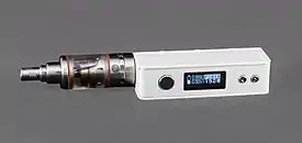 This article incorporates text from this source, which is in the public domain. - Yingst JM, Veldheer S, Hrabovsky S, Nichols TT, Wilson SJ, Foulds J (2015). "Factors associated with electronic cigarette users' device preferences and transition from first generation to advanced generation devices". Nicotine Tob Res. 17 (10): 1242–1246. doi:10.1093/ntr/ntv052. ISSN 1462-2203. PMC 4592341. PMID 25744966.