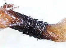 The aerosol of e-cigarettes is generated when the e-liquid comes in contact with a coil heated to a temperature of roughly 100–250 °C (212–482 °F) within a chamber, which is thought to cause pyrolysis of the e-liquid and could also lead to decomposition of other liquid ingredients.[notes 2][4] The aerosol (mist[5]) produced by an e-cigarette is commonly but inaccurately called vapor.[notes 3][1] E-cigarettes simulate the action of smoking,[7] but without tobacco combustion.[8] The e-cigarette aerosol looks like cigarette smoke to some extent.[9] E-cigarettes do not produce aerosol between puffs.[10] The e-cigarette aerosol usually contains propylene glycol, glycerin, nicotine, flavors, aroma transporters, and other substances.[notes 4][12] The levels of nicotine, tobacco-specific nitrosamines (TSNAs), aldehydes, metals, volatile organic compounds (VOCs), flavors, and tobacco alkaloids in e-cigarette aerosols vary greatly.[1] The yield of chemicals found in the e-cigarette aerosol varies depending on, several factors, including the e-liquid contents, puffing rate, and the battery voltage.[notes 5][14]